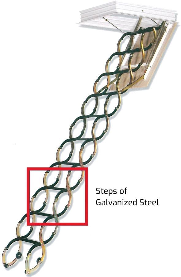 The Sótão ladders are built according to safety standards. They can be opened and closed very easily, thanks to the opening/closing system which is very convenient. Its installation is very easy, 5 minutes. To install the ladder you need to enter the ladder on the roof of the hole and from the ceiling fix it with 4 accessories that twist the screws that leads in the 4 corners of the ladder. The ladder capacity is 150 kg. Metal ladder steps 11 which opens by folding, the ladder is suitable for ceilings of 2,70 m and a maximum height of 3,00 m. Exclusively for installation inside buildings. To adapt the ladder at lower heights is necessary to disassemble steps.