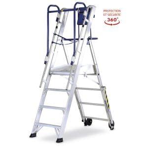 Construite conformément à la norme européenne EN 131-7, cette plateforme de travail combine toutes les caractéristiques d’une escabeau télescopique avec une plateforme, ce qui permet d’obtenir un mélange de sécurité, portabilité, stabilité et facilité de manipulation. Le système télescopique permet d’obtenir 9 hauteurs de travail différentes.