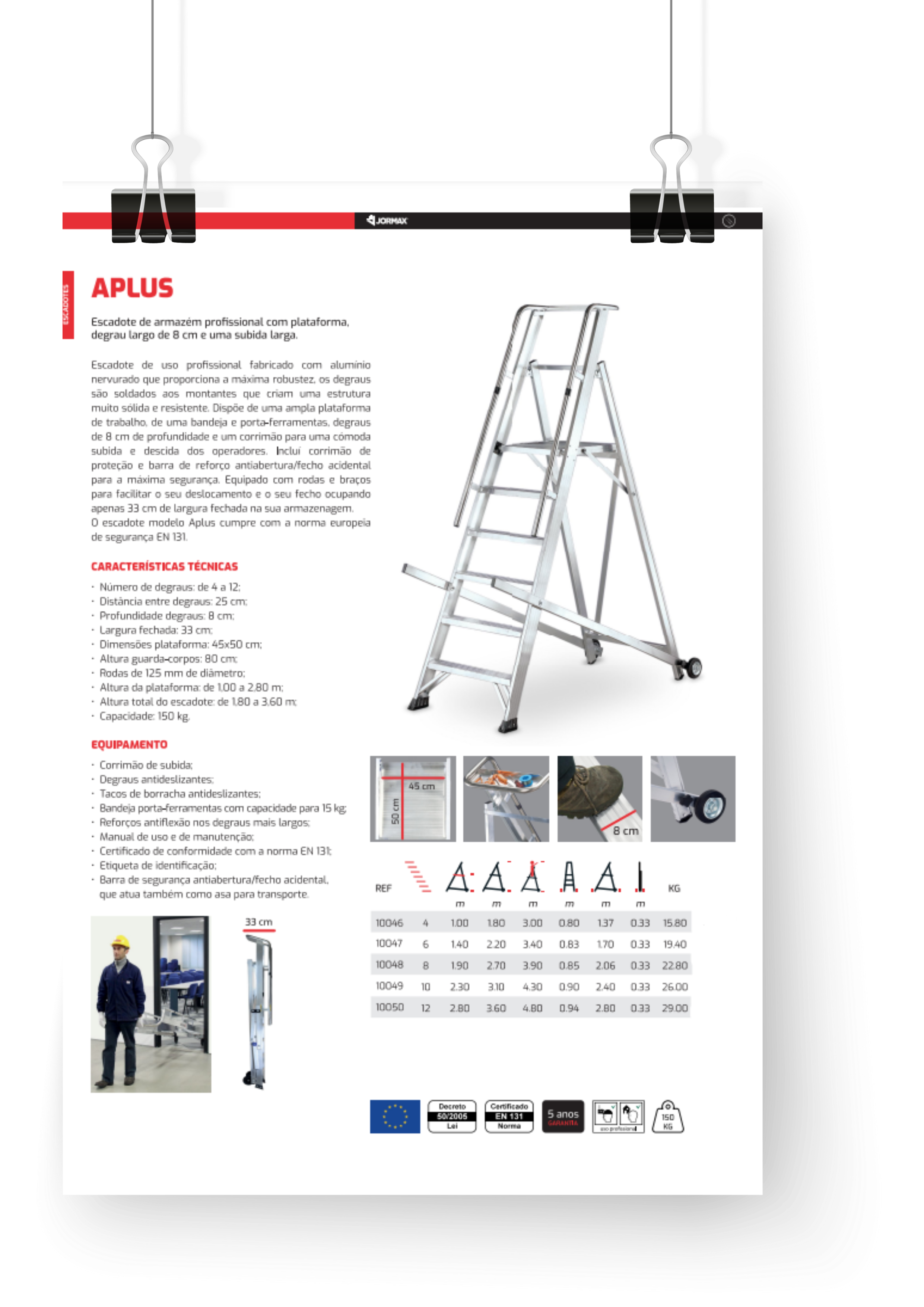 O escadote modelo Aplus cumpre com a norma europeia de segurança EN 131.