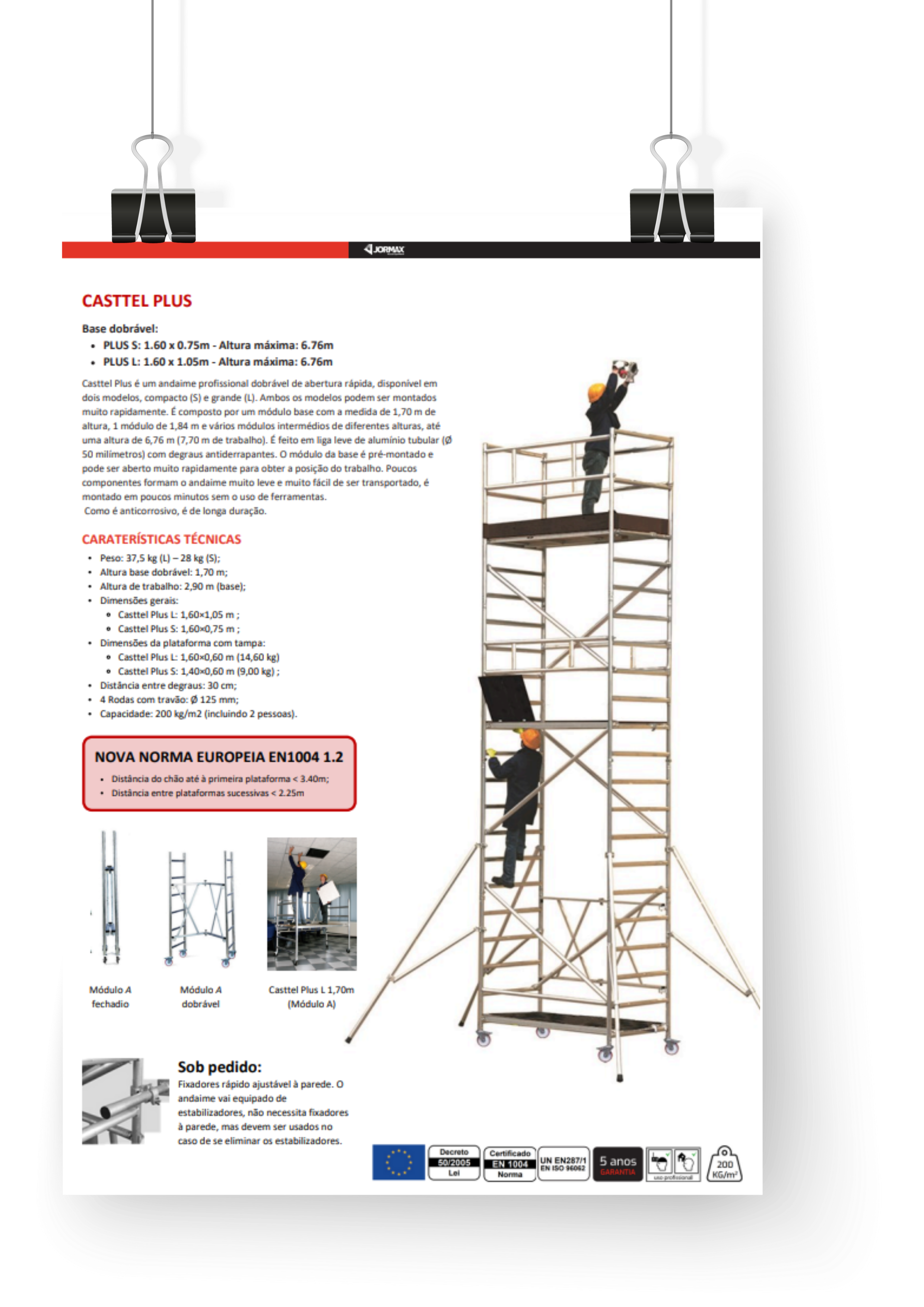 *Não suba à plataforma acima de 1m, pois ficará sem proteções. Caso necessário, adquira 2 horizontais adicionais.