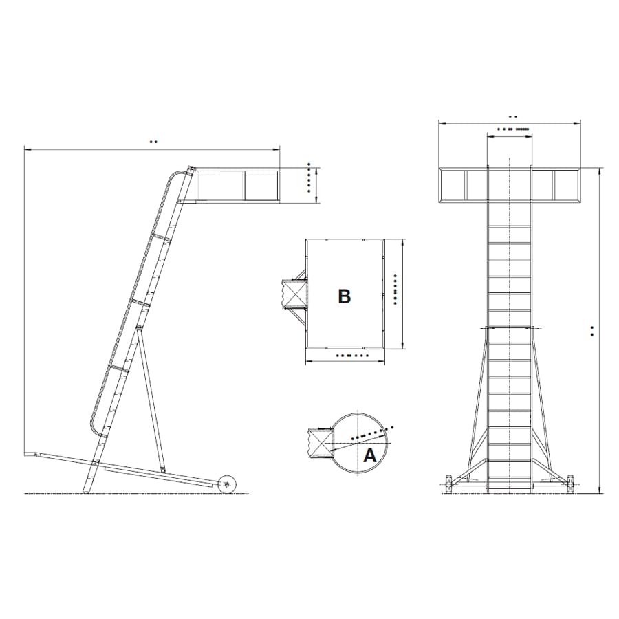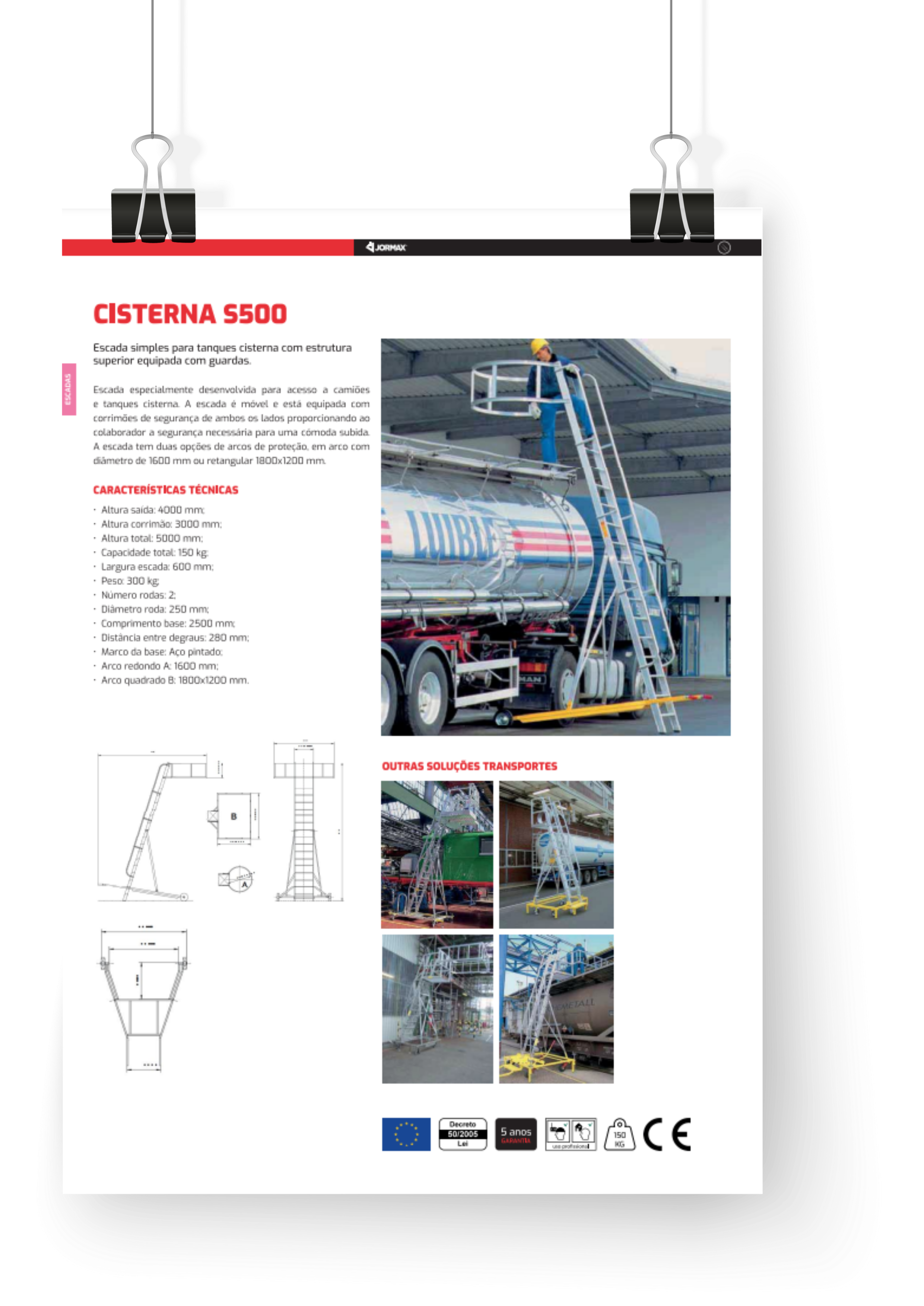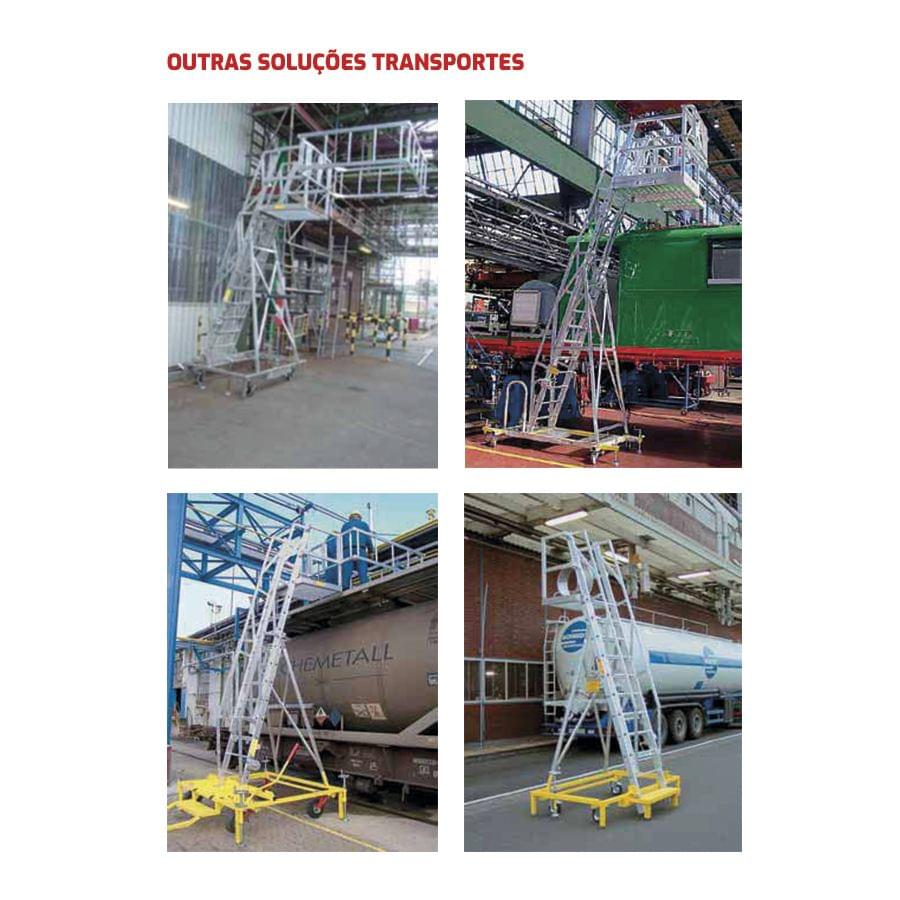 Escada especialmente desenvolvida para acesso a camiões e tanques cisterna. A escada é móvel e está equipada com corrimões de segurança de ambos os lados proporcionando ao colaborador a segurança necessária para uma cómoda subida. A escada tem duas opções de arcos de proteção, em arco com diâmetro de 1600 mm ou retangular 1800×1200 mm.