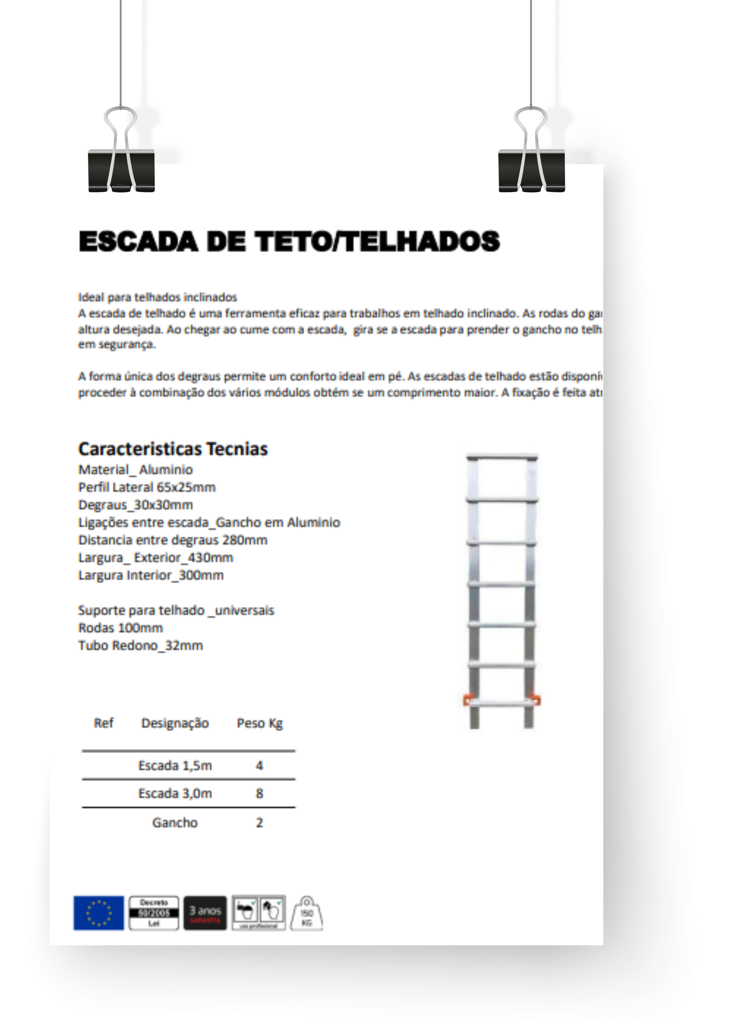 Escada ideal para telhados inclinados.