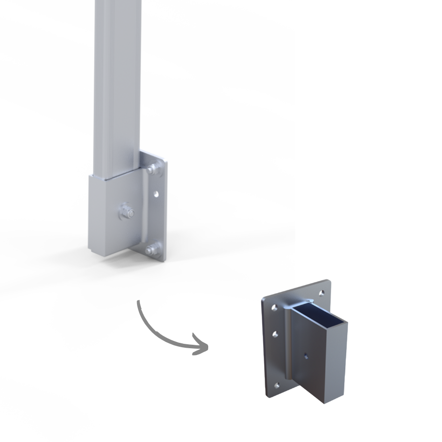 • Centro de alumínio para centralizar pilares com 1500 mm de distância;