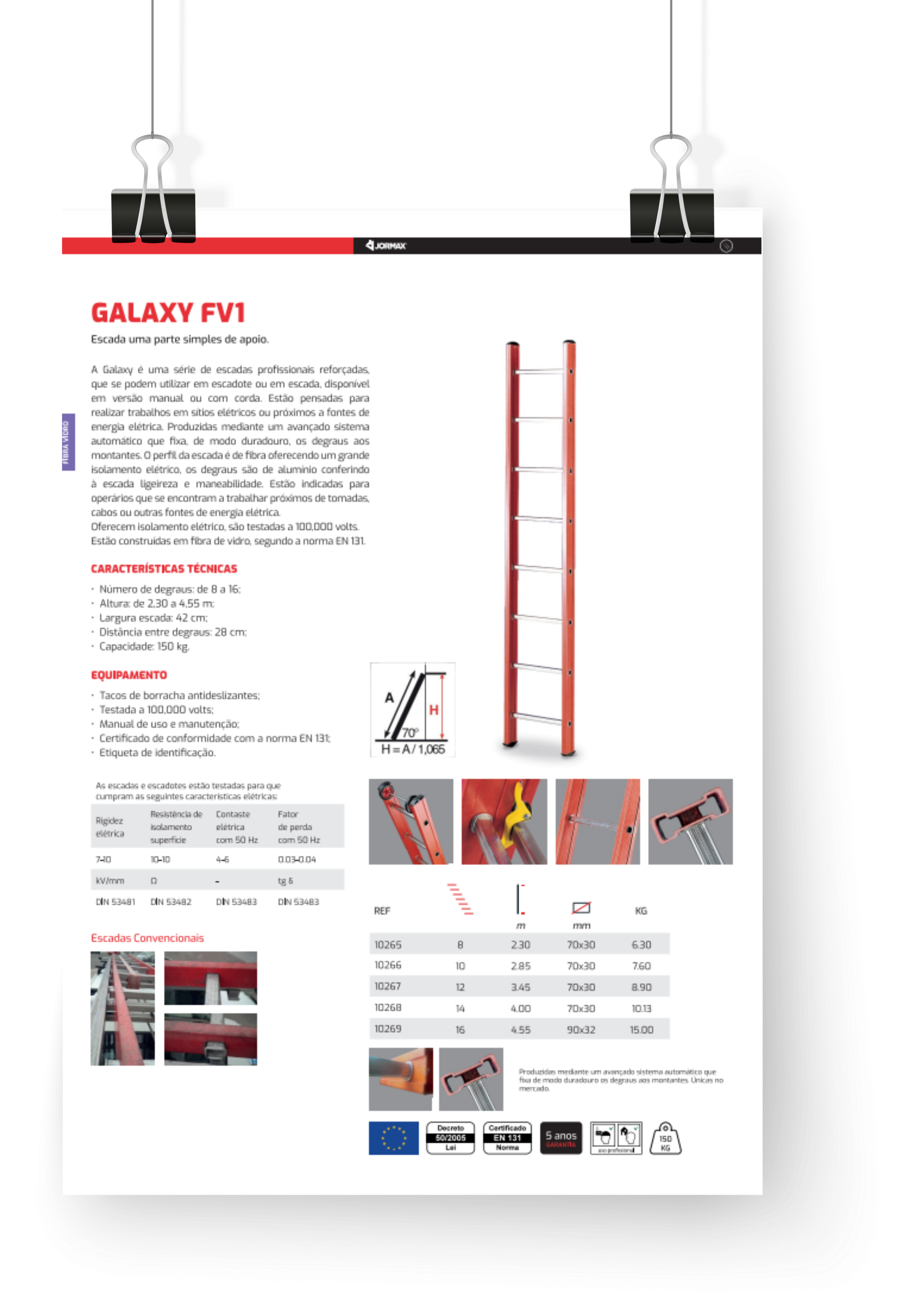 A Galaxy é uma série de escadas profissionais reforçadas, que se podem utilizar em escadote ou em escada, disponível em versão manual ou com corda. Estão pensadas para realizar trabalhos em sítios elétricos ou próximos a fontes de energia elétrica. Produzidas mediante um avançado sistema automático que fixa, de modo duradouro, os degraus aos montantes. O perfil da escada é de fibra oferecendo um grande isolamento elétrico, os degraus são de alumínio conferindo à escada ligeireza e maneabilidade. Estão indicadas para operários que se encontram a trabalhar próximos de tomadas, cabos ou outras fontes de energia elétrica. Oferecem isolamento elétrico, são testadas a 100,000 volts.