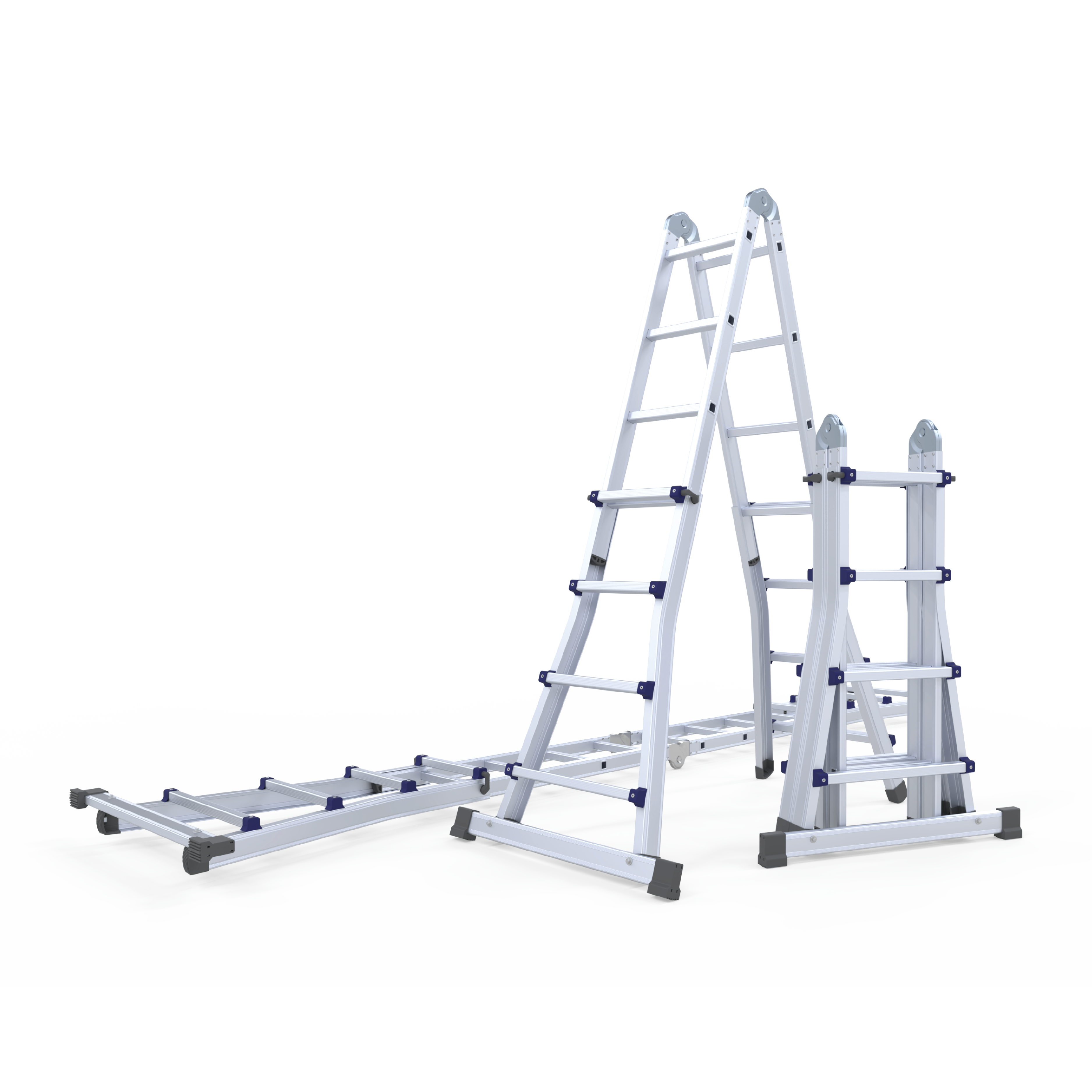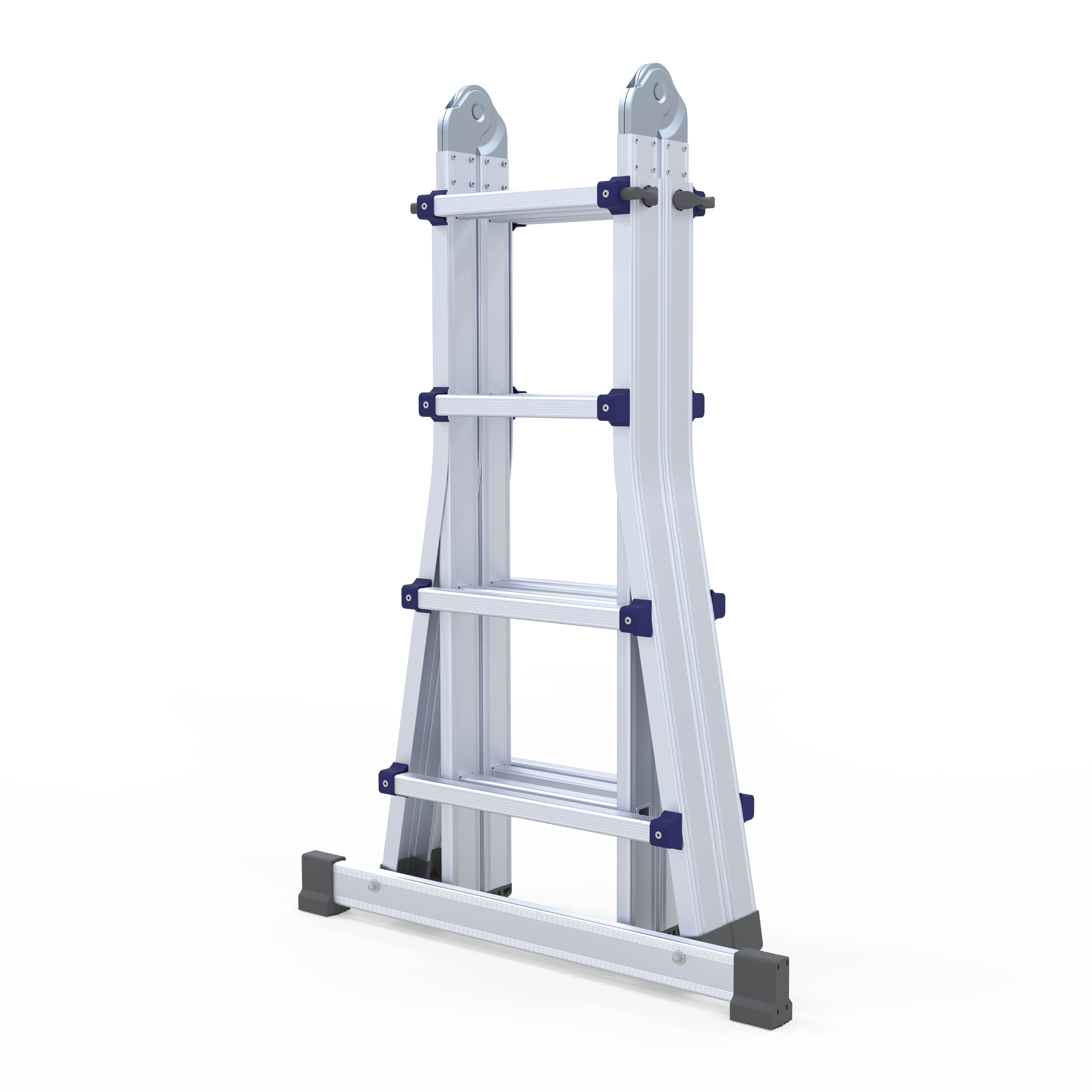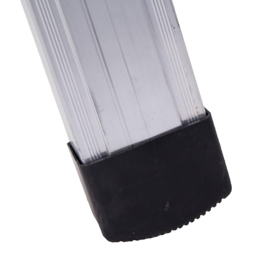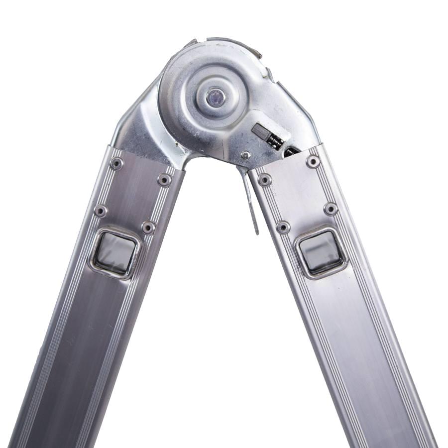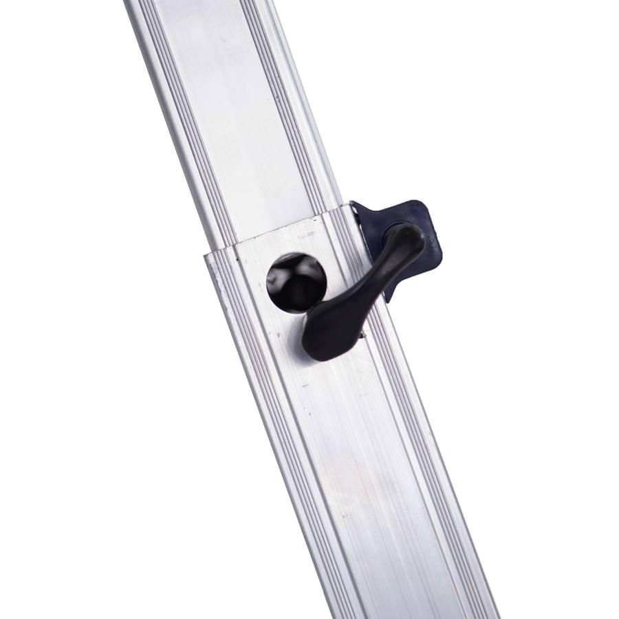 Escada telescópica multiusos fabricada em alumínio nervurado extrudido mediante um avançado sistema de degraus cravados que se fixam de modo duradouro aos montantes. Dobradiças em aço com tratamento à corrosão, funcionam como articulações de posicionamento rápido, permitindo trabalhar em posição de escadote ou de apoio na parede. Poderá ainda realizar trabalhos a diferentes níveis ultrapassando escadas e outros obstáculos. Fácil transporte e armazenagem graças a sua capacidade telescópica. Os tamanhos de 6, 8 e 10 degraus estão homologados de acordo com a norma EN 131. A escada é fornecida sem travessa e sem estabilizadores em conformidade com o DL 50/2005, para cumprimento da norma EN 131 a escada deverá estar devidamente equipada com travessa ou estabilizadores.