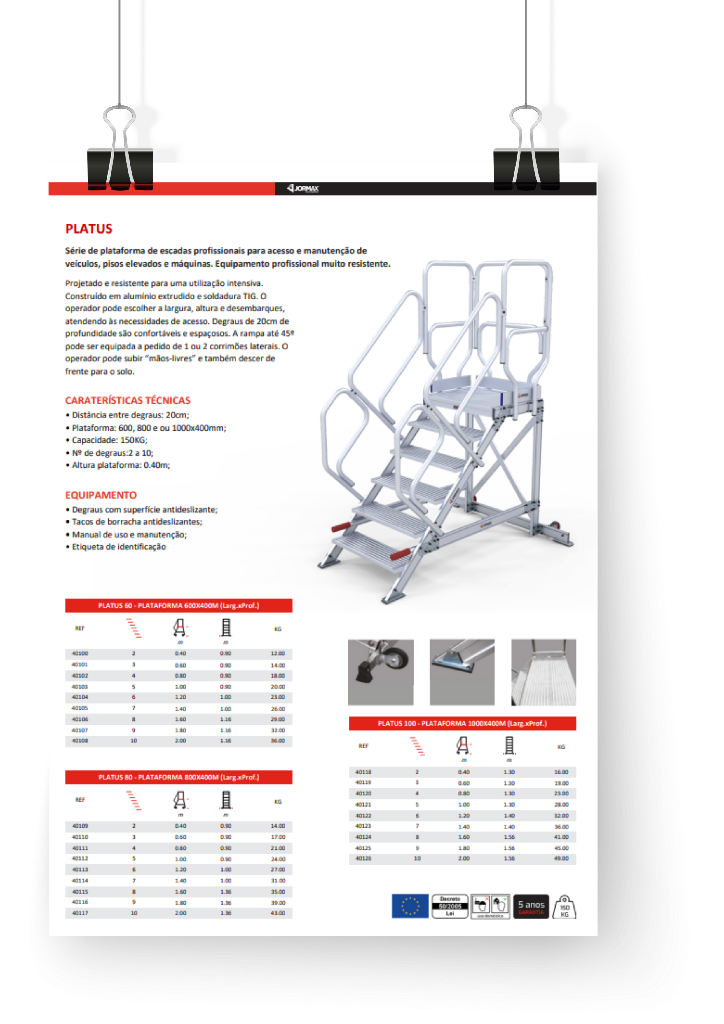 PLATUS 100 DIMENSÃO PLATAFORMA (Larg.xProf.) 1000×400 mm