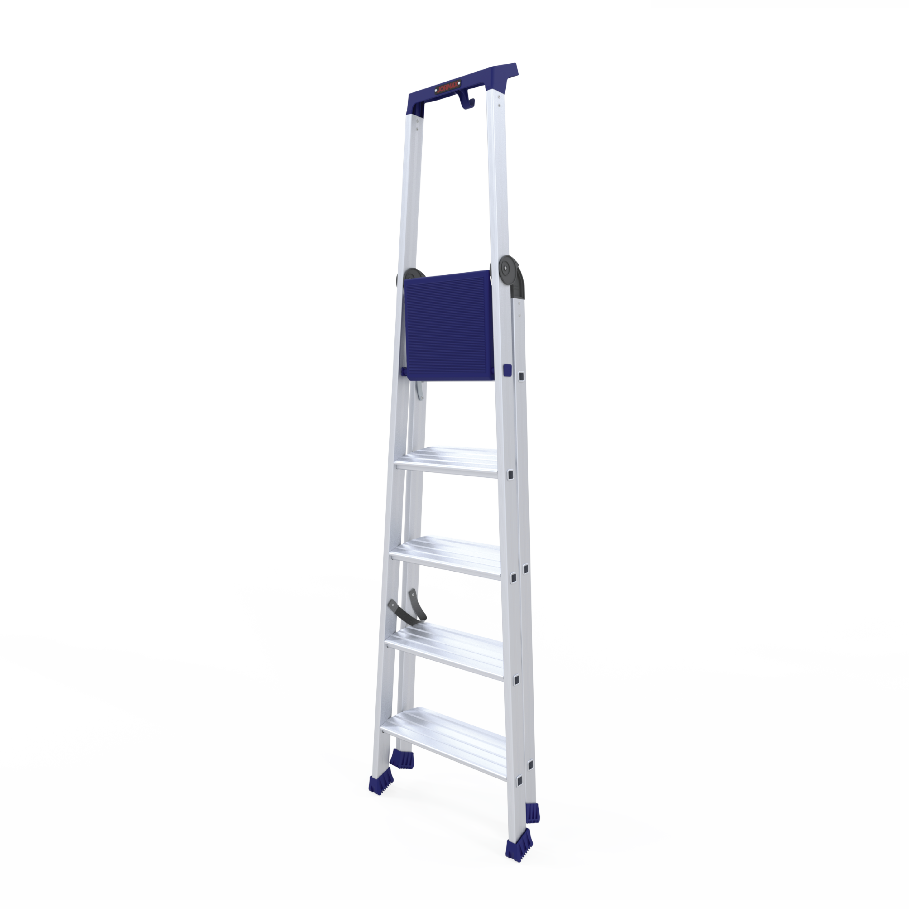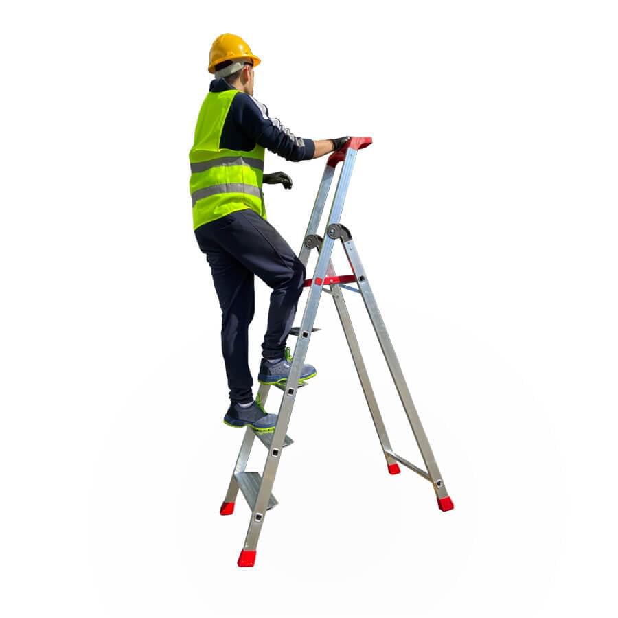 Escadote de uso profissional fabricado em alumínio de máxima robustez.