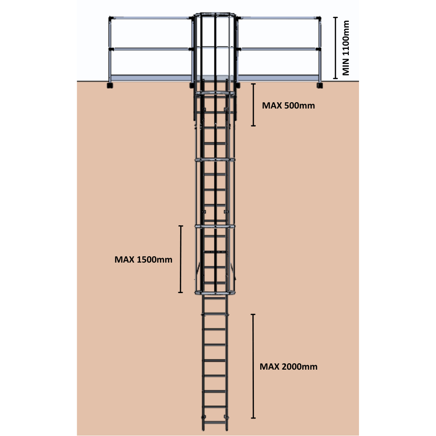 | Uma escala até uma altura de 5 m (inclui guardas de proteção) |