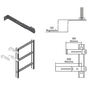criando uma estrutura ultrarresistente. A escada tem um prolongamento de 1,10 m acima da base de saída, auxiliando a subida e descida do utilizador. Os fixadores à parede construídos em aço galvanizado, são facilmente colocados e afixados criando uma sólida e segura estrutura.